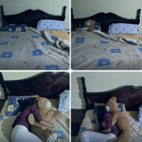 4 fotografías, en la primera se encuentra una cama con el lado derecho destendido, en la segunda la cama destendida del lado derecho y un oso de peluche cobijado en el lado izquierdo. En la tercera foto una niña acostada del lado izquierdo de la cama…