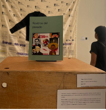 Libro verde con titulo Rostros del pasado con un collage de personajes históricos